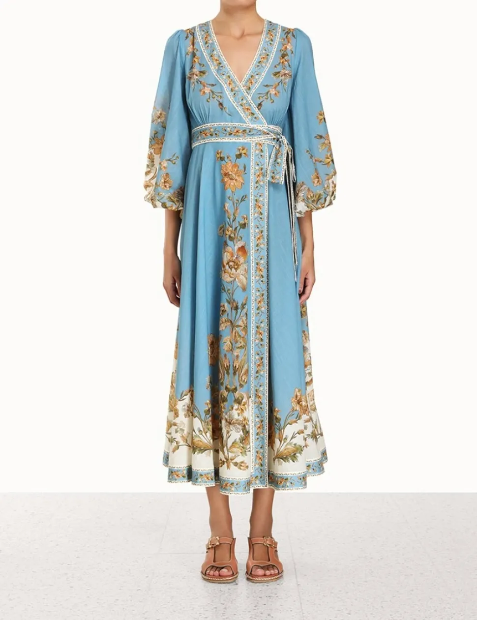The Chintz Wrap Midi Dress In Blue Daisy Floral From Our Summer Swim 2023 Collection. A Cotton Midi Dress Featuring A Wrap Front Silhouette And A Self Tie Belted Waist.- Cotton