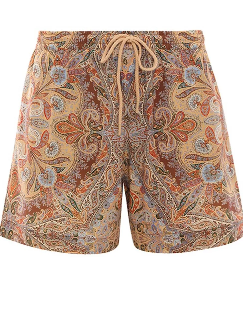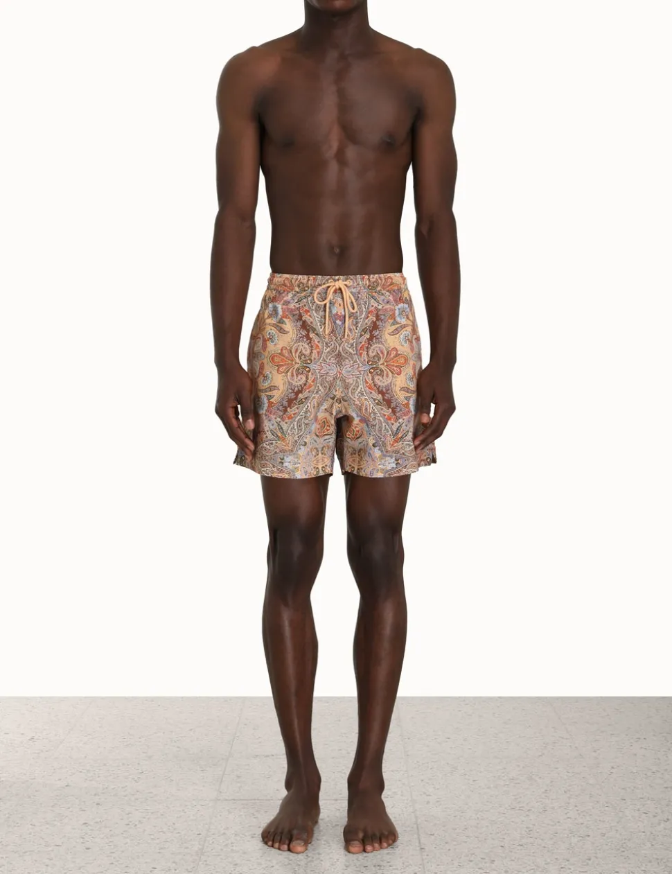 The Devi Mens Boardshort In Multi Paisley From Our Summer Swim 2023 Collection. A Printed Boardshort With Elasticated Waistband, Drawstring Cord, Side Seam Pockets And Inbuilt Support Mesh Lining.- Relaxed Boardshorts