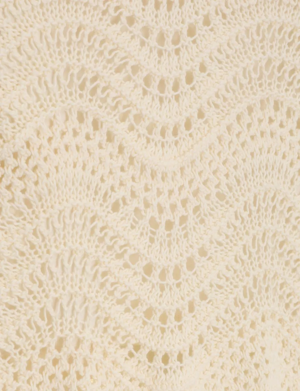 The Devi Textured Knit Skirt In Cream From Our Summer Swim 2023 Collection. A Midi Skirt Featuring An Elastic Waistband And Scallop Knit Throughout.- Knitted Midi Skirt
