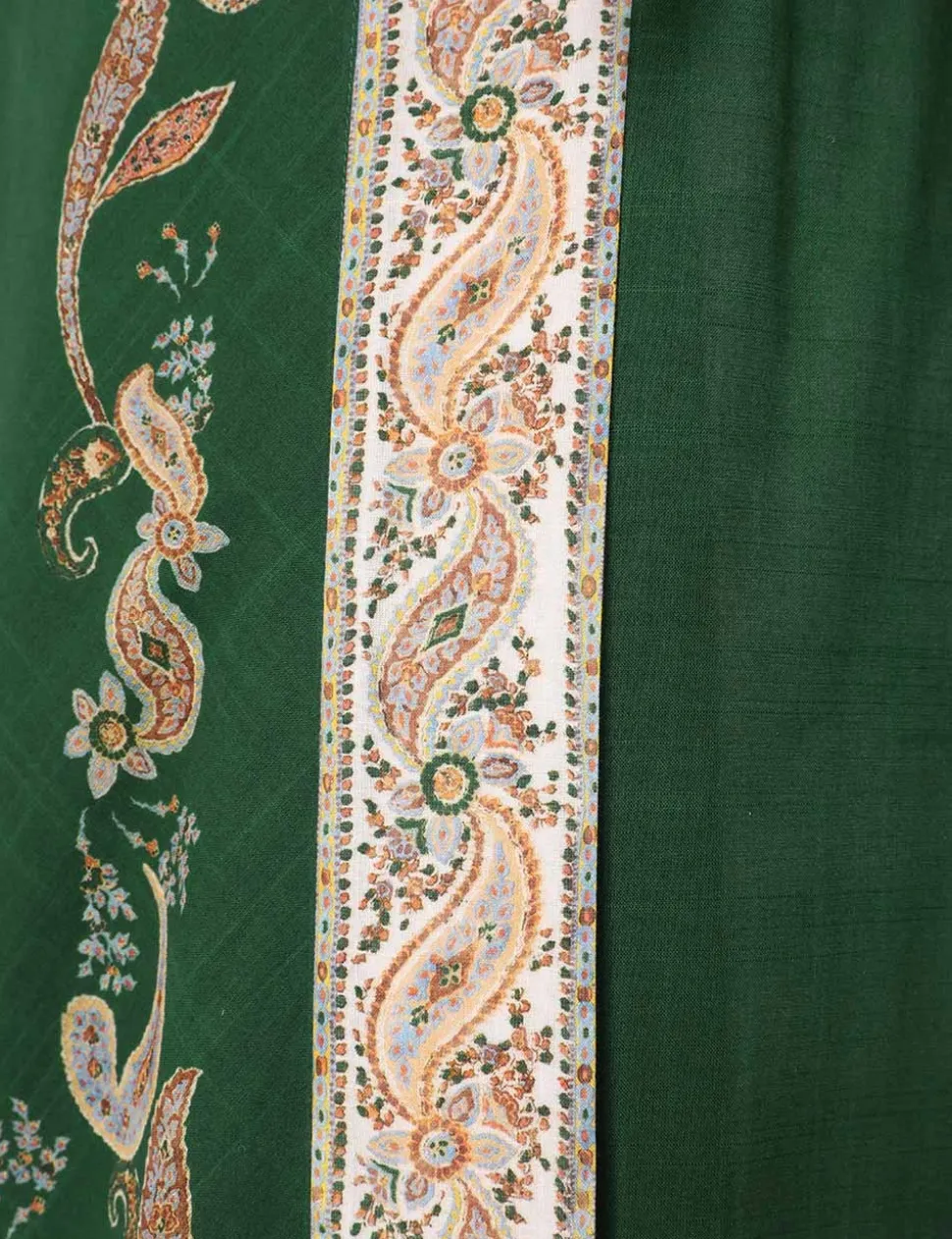 The Devi Wrap Midi Dress In Emerald / Paisley From Our Summer Swim 2023 Collection. A Cotton Midi Dress Featuring A Wrap Front Silhouette And A Self Tie Belted Waist.- Cotton