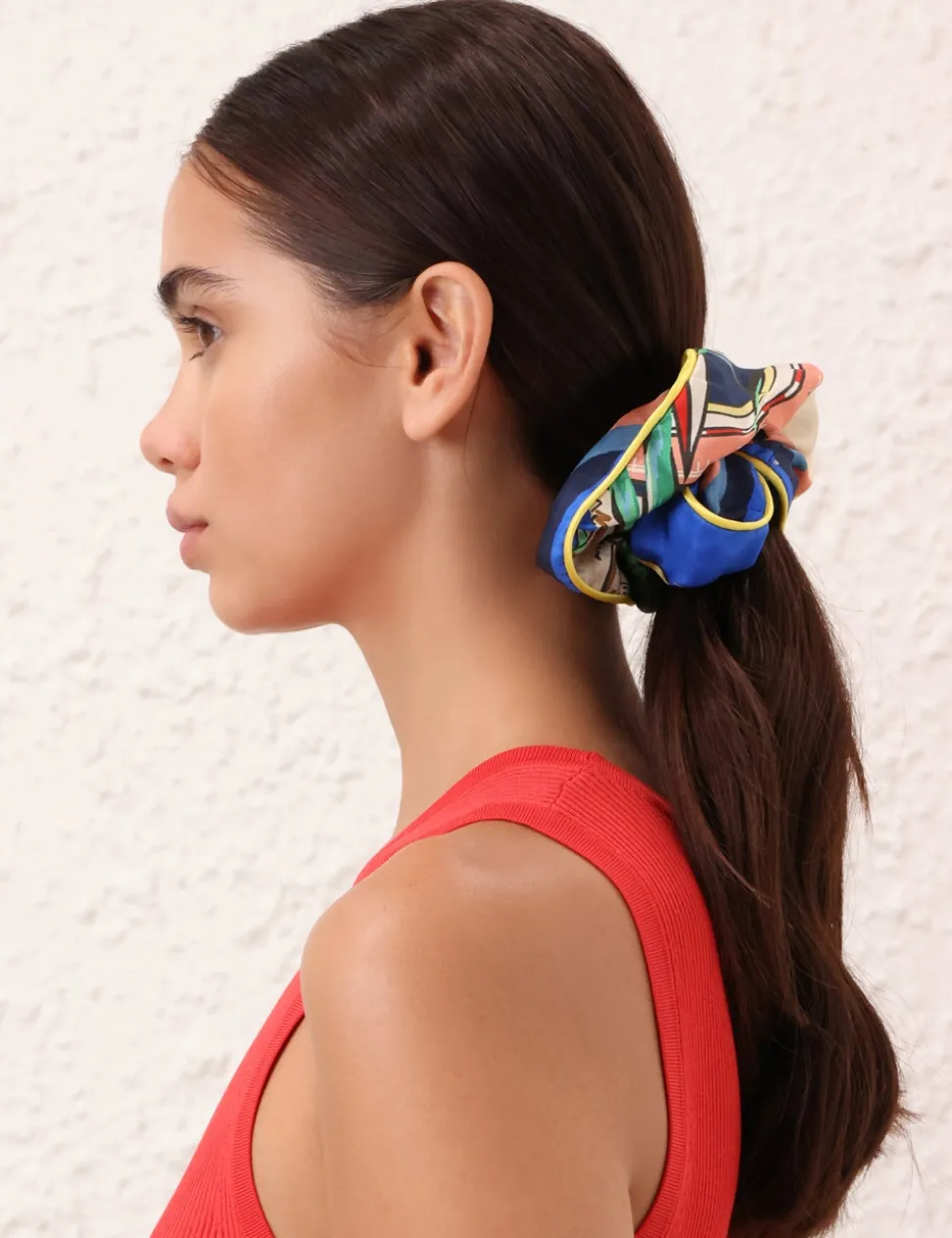 The Double Faced Silk Scrunchie In Nautical Map From Our Resort 2024 Collection, Matchmaker. A Silk Scrunchie Featuring Contrast Piped Edges.- Silk Scrunchie