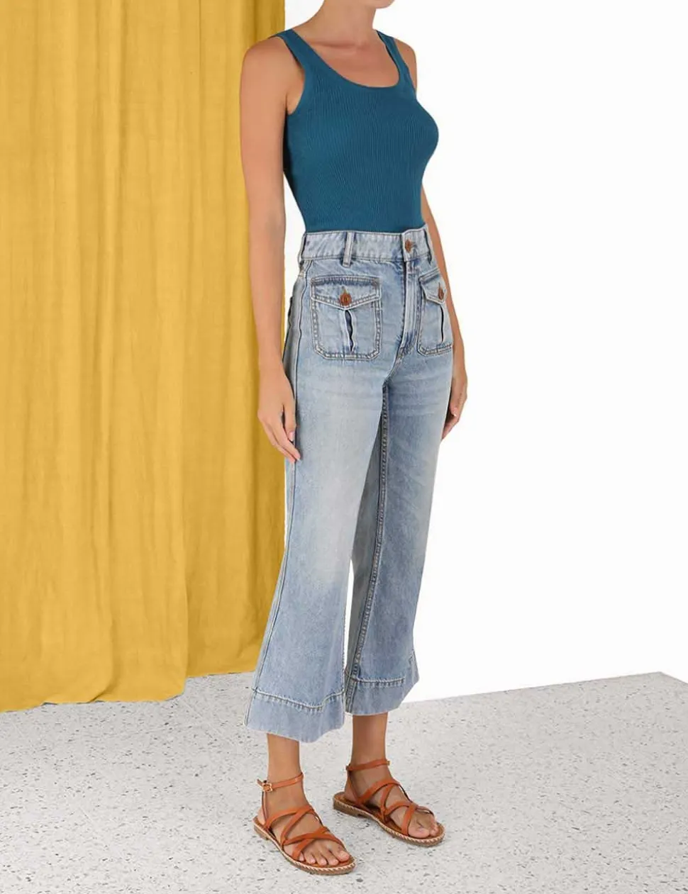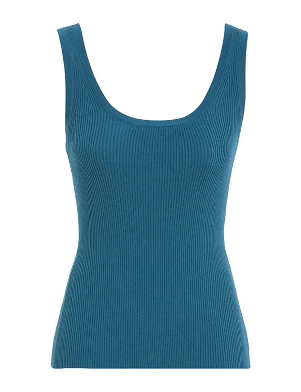 The Ginger Scoop Neck Tank In Teal From Our Summer Swim 2023 Collection. A Ribbed Knit, Fitted Tank With A Scoop Neckline At The Front And Back.- Fitted, Ribbed Tank
