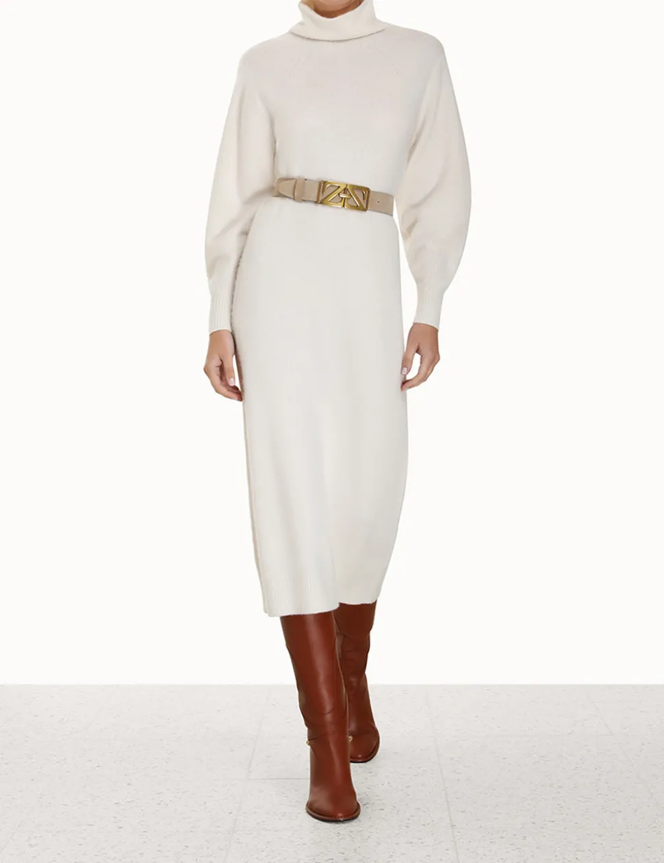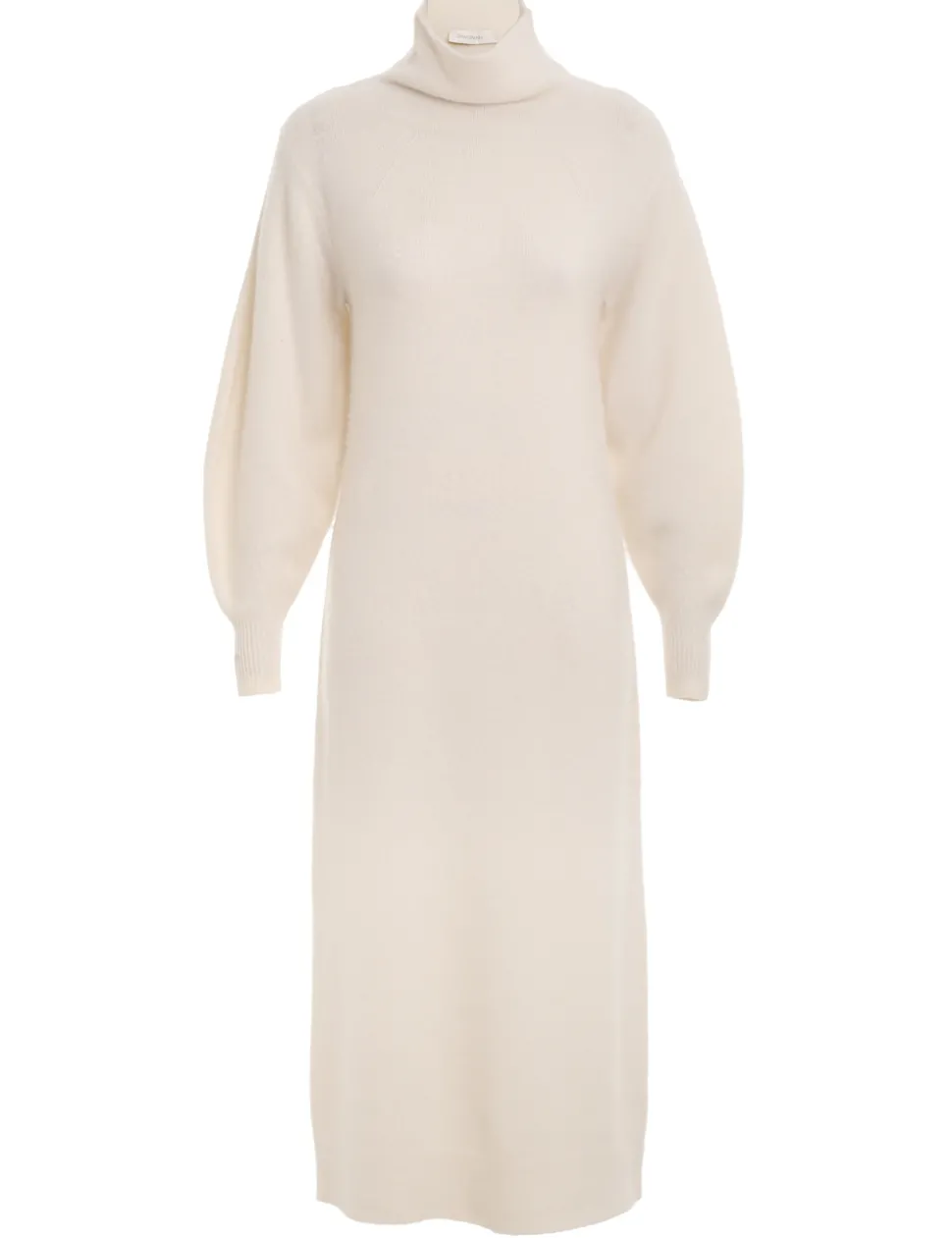 The Lyrical Brushed Wool Dress In Cream From Our Fall 2023 Collection, Luminosity. A Brushed Wool Midi Dress Featuring A Roll Neck And Ribbed Edges Throughout.- Merino And Cashmere Blend Yarn