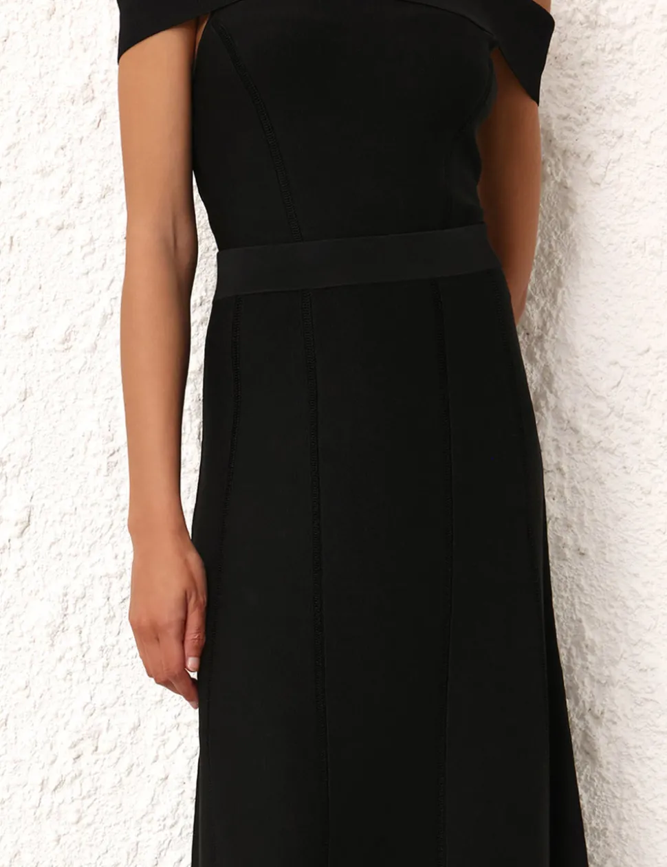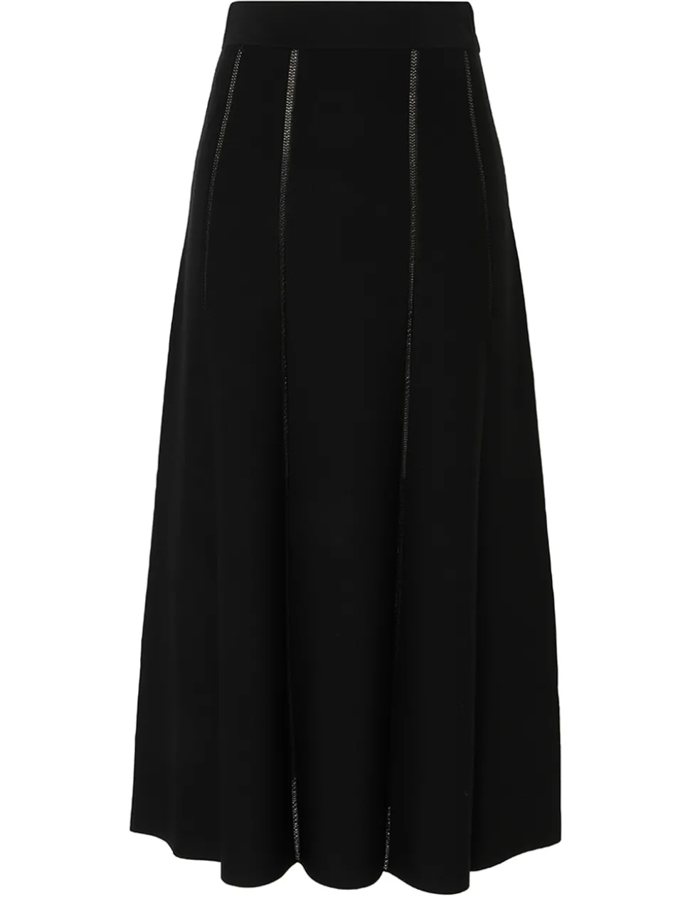The Knit Panelled Midi Skirt In Black From Our Resort 2024 Collection, Matchmaker. A Knitted Midi Skirt Featuring A Pointelle Stitch Detail Throughout.- Knitted Midi Skirt