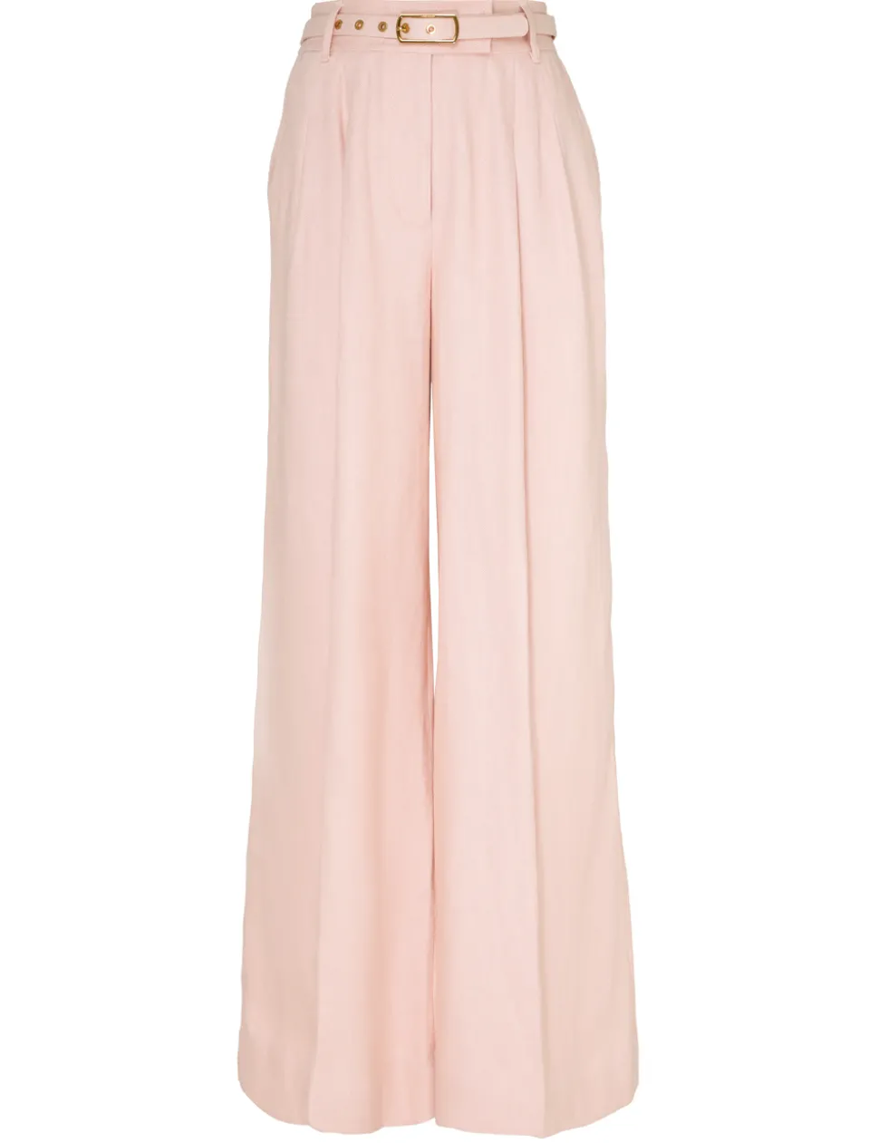 The Matchmaker Wide Leg Pant In Blush From Our Resort 2024 Collection, Matchmaker. A Linen Wide Leg Pant Featuring Side Seam Pockets.- Linen Wide Leg Pant