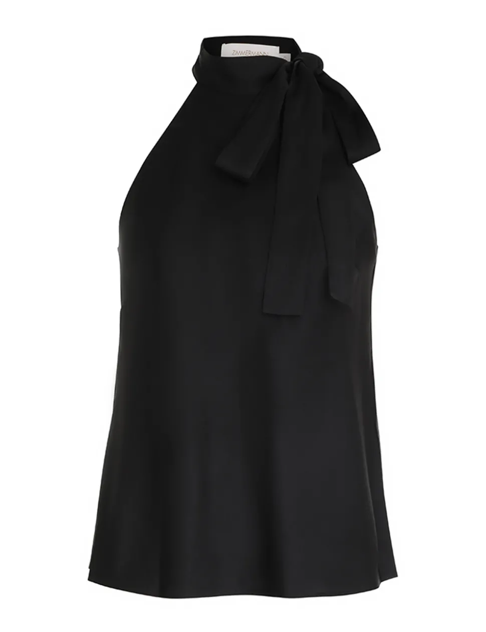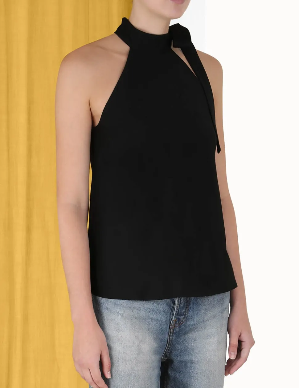 The Neck Tie Tank Top In Black From Our Fall 2023 Collection, Luminosity. A Sleeveless Tank Featuring A Self Tie Neck Tie.- Tank Top