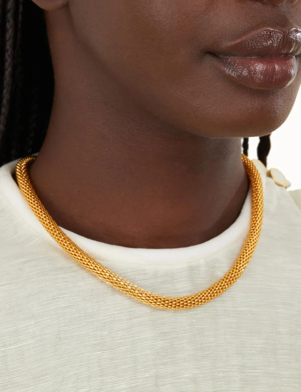 The Popcorn Chain Necklace In Gold From Our Spring 2023 Collection, Wonderland. A Gold Plated Tubular Chain Necklace.- 20K Gold Plated