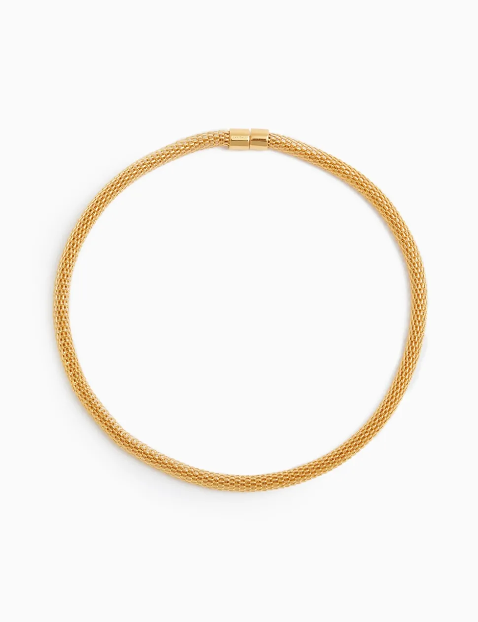 The Popcorn Chain Necklace In Gold From Our Spring 2023 Collection, Wonderland. A Gold Plated Tubular Chain Necklace.- 20K Gold Plated