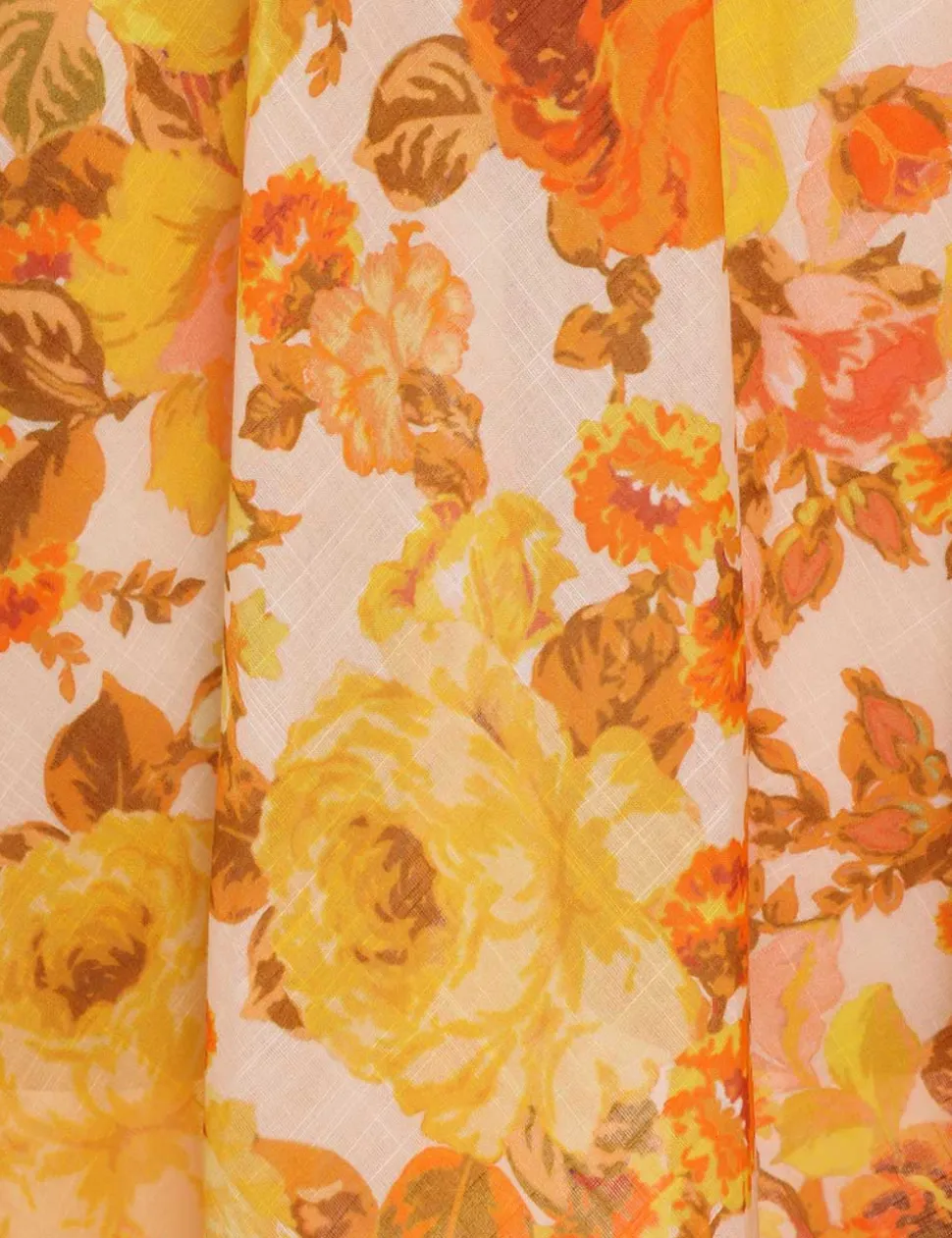 The Raie Smocked Bodice Midi Dress In Yellow/Orange Floralfrom Our Summer Swim 2023 Collection. A Cotton Midi Dress Featuring A Shirred Smocked Bodice And A Bias Cut Skirt, Finished With Lace Trims.- Cotton Dress