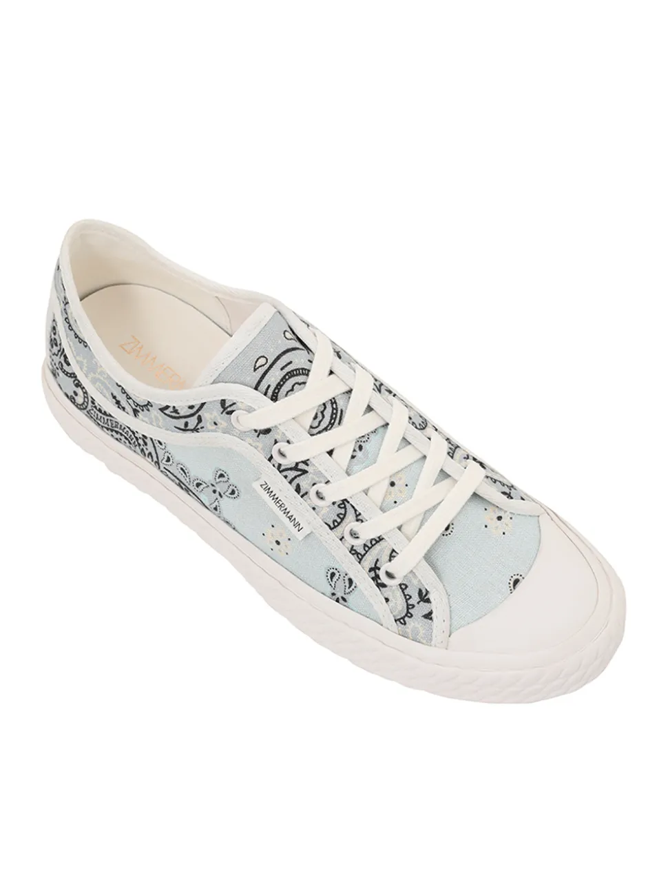 The Twist Low Top Sneaker In Blue Bandana From Our Resort 2024 Collection, Matchmaker. A Linen Printed Low Top Sneaker Featuring A Rope Look Sole.- Linen Sneaker